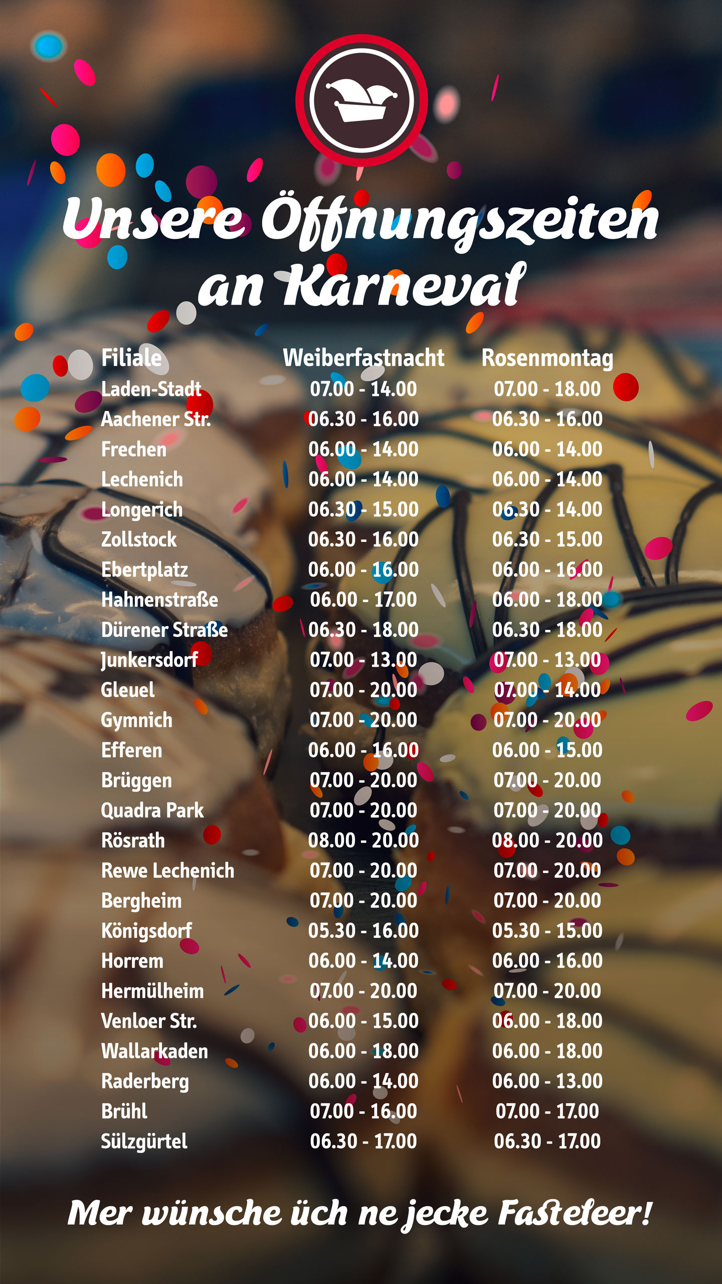 +++ Eine Übersicht über die Öffnungszeiten während der Karnevalstage findet ihr hier +++